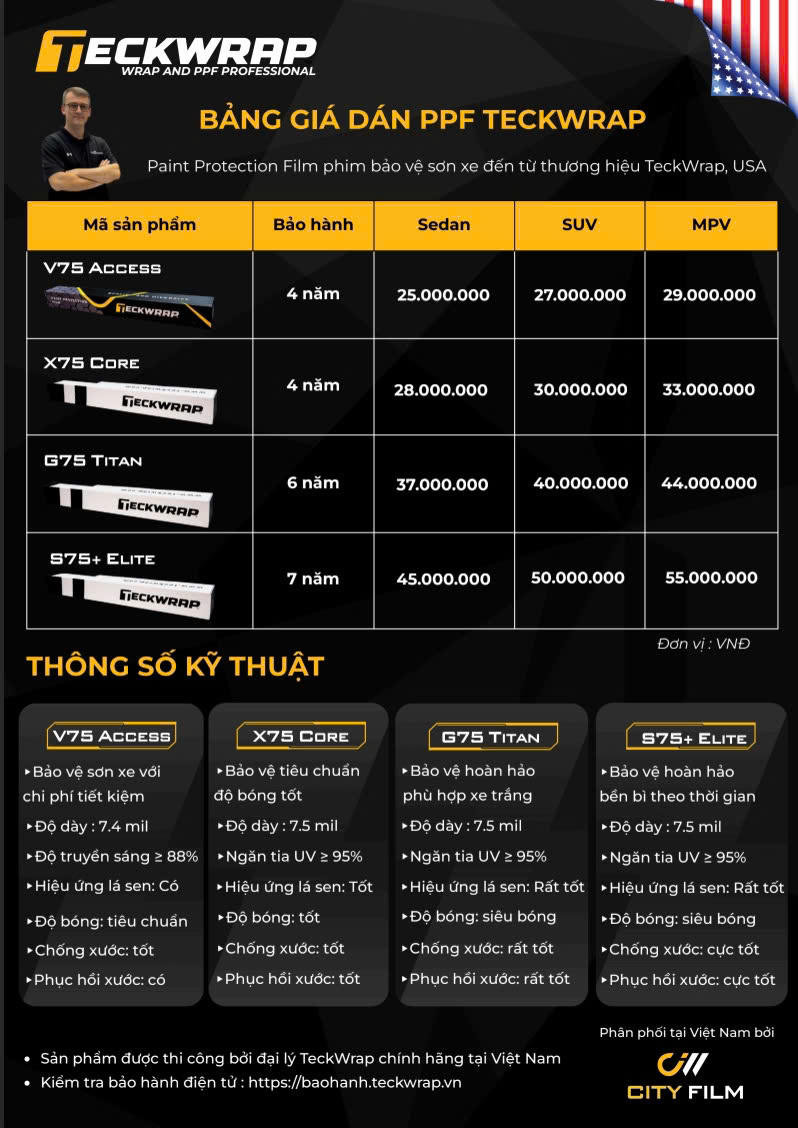 Với 2 dòng sản phẩm PPF là TeckWrap và CityFilm